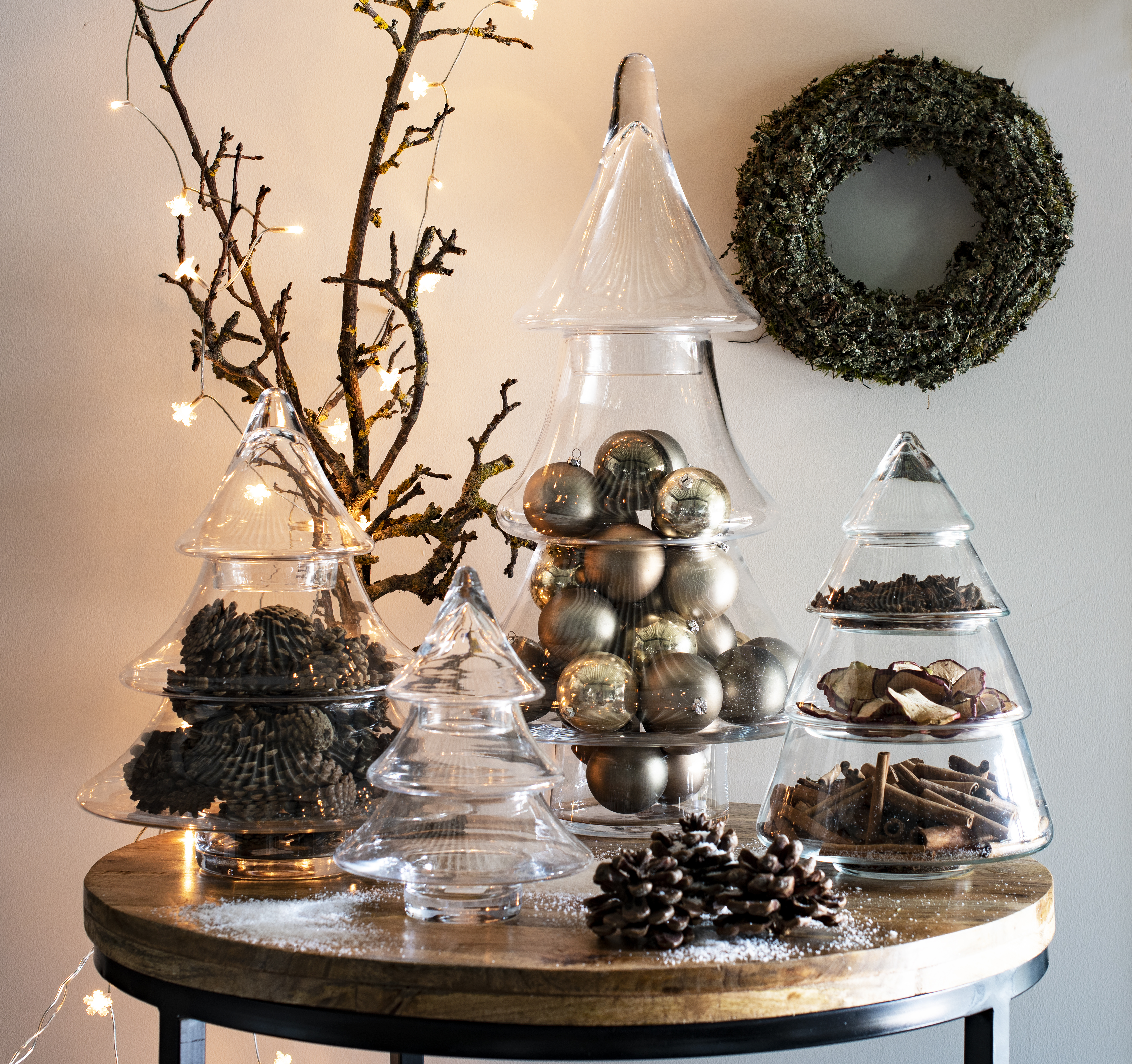 Unverwechselbares Dekoglas in Form eines Tannenbaums - Einfach den Deckel abnehmen und individuell mit Weihnachtkugeln, einer batteriebetriebenen Lichterkette und Zweigen füllen. Traumhaft auch miß süßen Leckereien wie Plätzchen, Keksen, Bonbons und vielem mehr. Ein stilvoller Blickfang am Schreibtisch, auch an Empfangstheken wie z.B. im Hotel oder beim Arzt ein stimmungsvoller Hingucker.