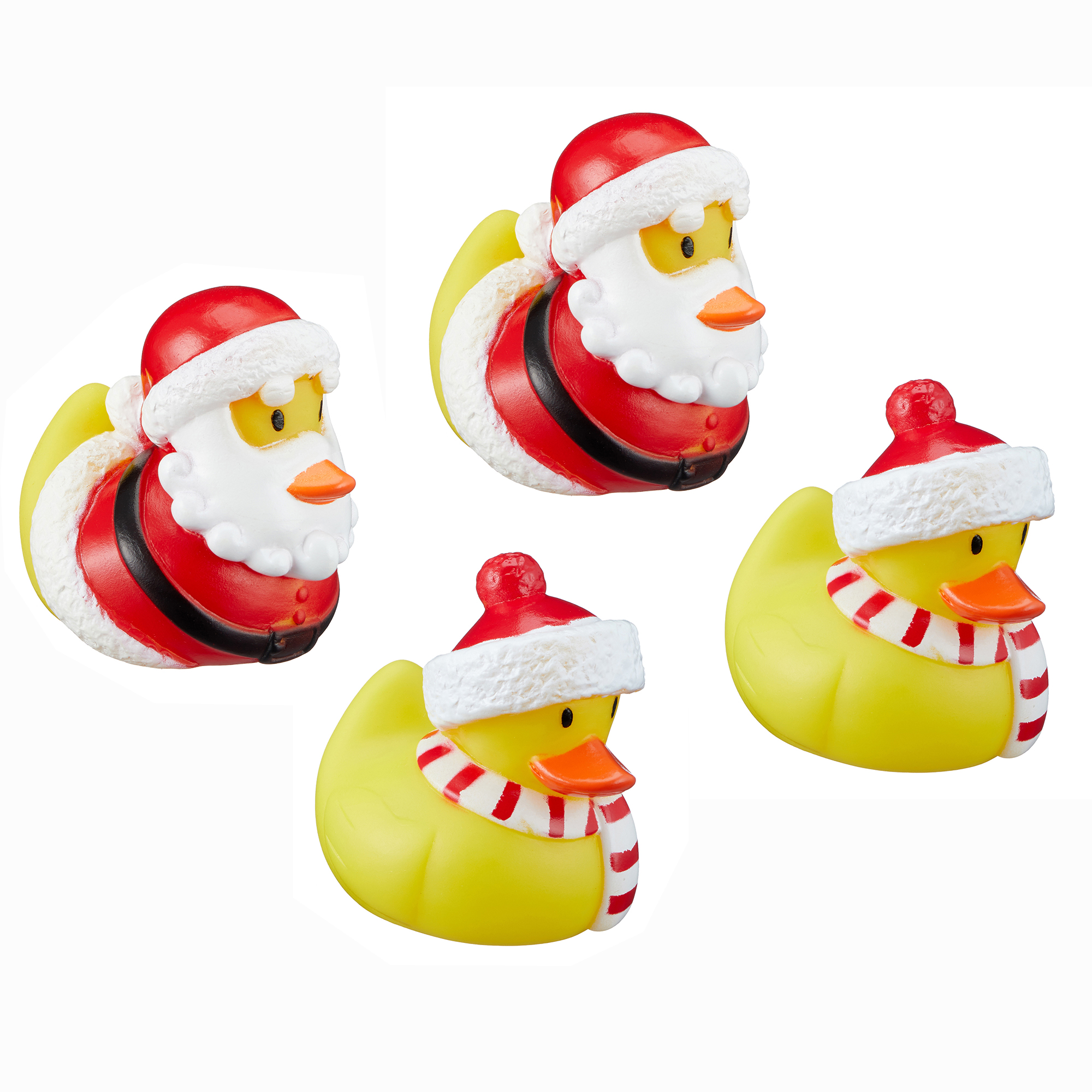 Süßes 4-teiliges Set kleiner Badeenten im weihnachtlichen Look mit Schal und Nikolausmütze. Im 4er Set sind 2 Modelle für Sie sortiert. Liebevolles Mitbringsel in der Weihnachtszeit oder auch als Geschenkanhänger ein niedlicher Blickfang.