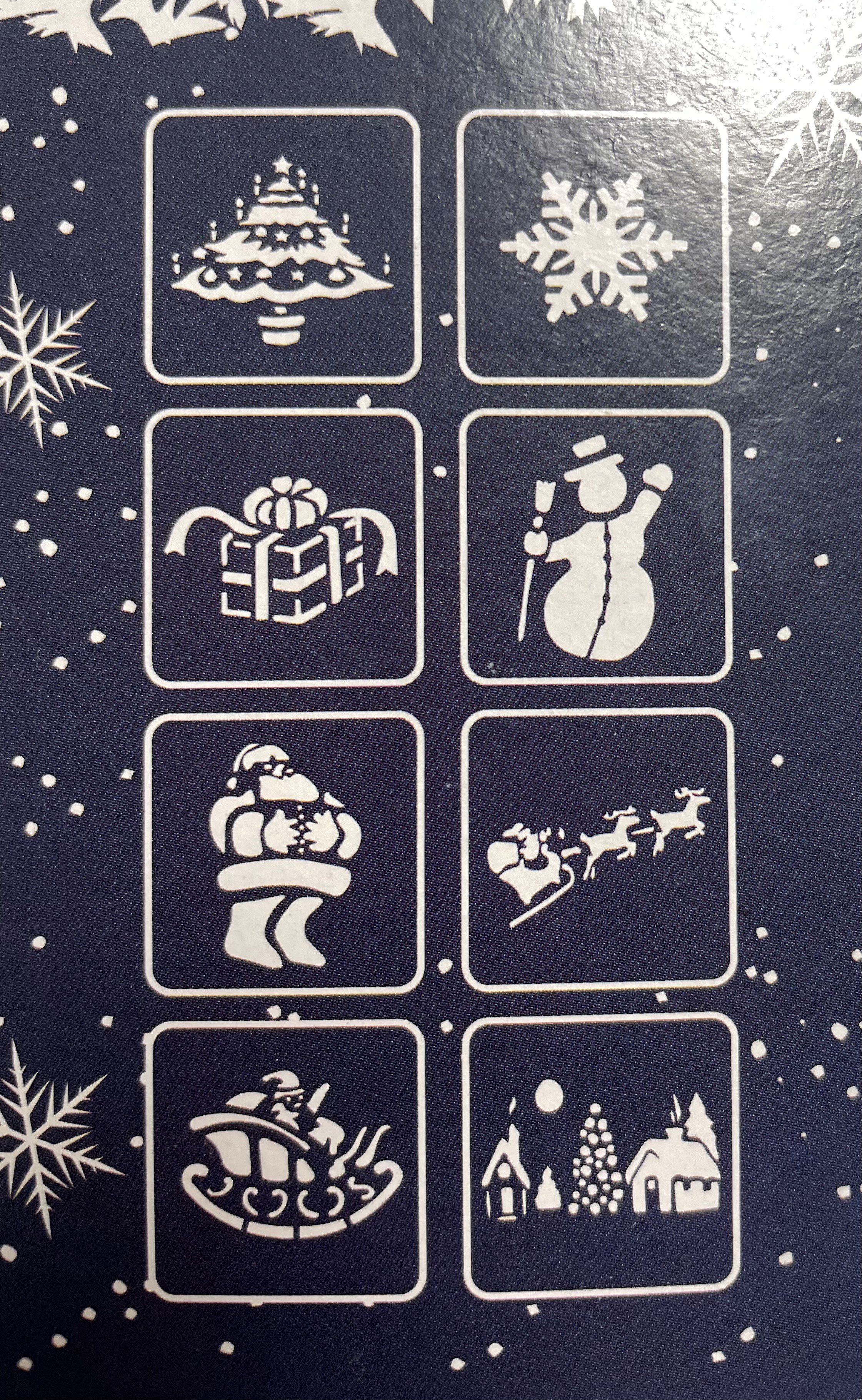 Schneespray mit 8 Schablonen für eine stimmungsvolle Weihnachtdeko an Fenstern. Mit den mitgelieferten Schablonen wird Ihre weihnachtliche Deko zum absoluten Highlight, und das auch noch spielend leicht. Schaffen Sie mit unserem Schneespray inkl. Schablonen eine traumhafte, weihnachtliche Atmosphäre in Ihrem schönen Zuhause. Die Schablonen haben ein Maß von 17,5 x 23,5 cm.
