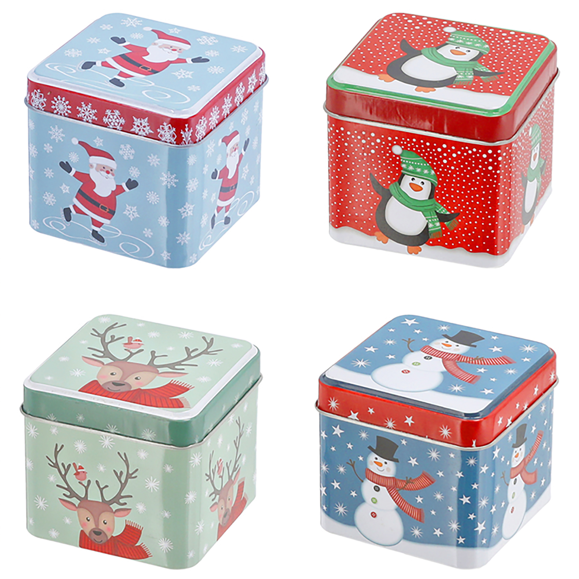 4-tlg. Set Metalldosen mit Deckel und Weihnachtsmotiven - 7,5 x 6,5 cm