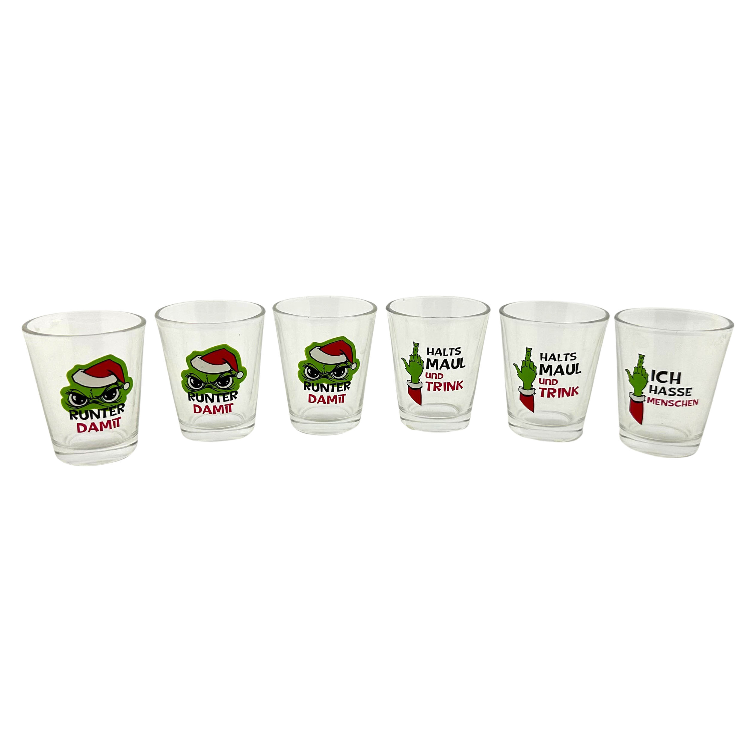 6 x Schnapspinnchen aus Glas "Festtags-Muffel" 40 ml - 3 Modelle