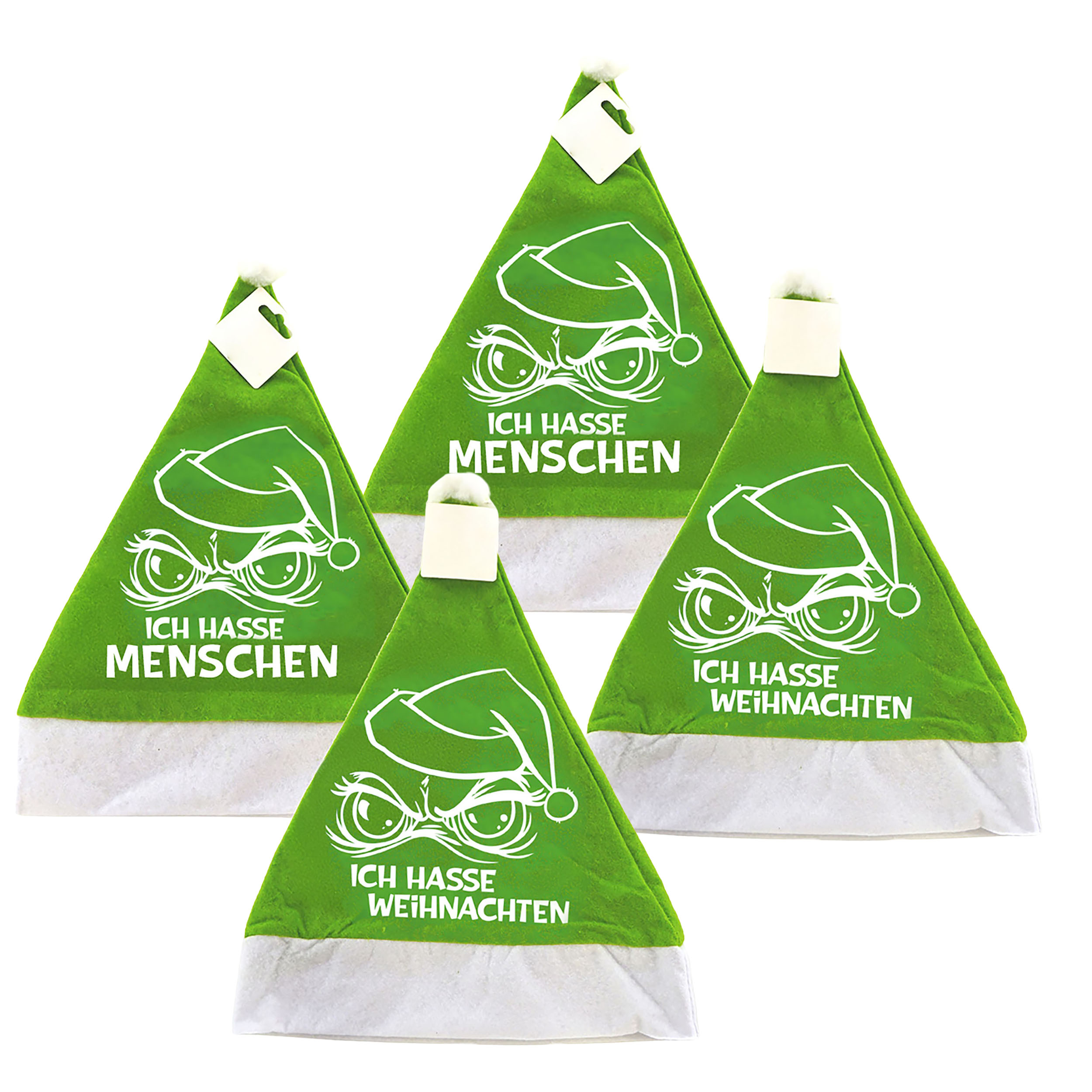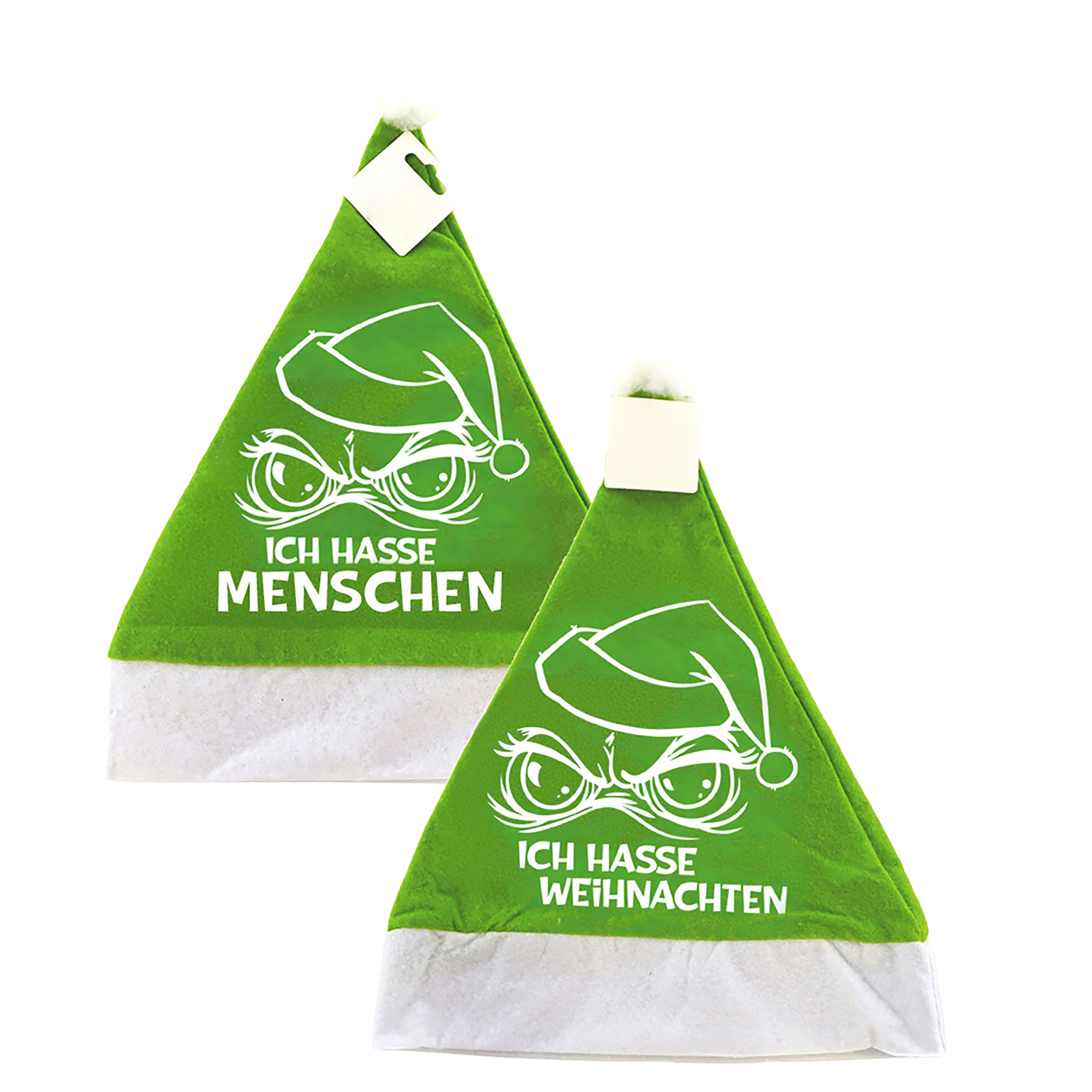 Unsere witzigen Nikolausmützen aus Plüsch mit lustigem Bommel sind das perfekte Accessoire für alle, denen Weihnachten so richtig auf die Nerven geht. Mit ihrem Anti-Weihnachts-Design und dem humorvollen Aufdruck "Ich hasse Weihnachten" und "Ich hasse Menschen" bringen sie deine Abneigung gegenüber der Feiertagszeit auf lustige Art zum Ausdruck. Unsere Festtags-Muffel-Nikolausmützen sorgen garantiert für ein Schmunzeln und sind ein tolles Geschenk für alle, die Weihnachten nicht so ernst nehmen. Zeige deinen Freunden und Verwandten mit diesen urigen Weihnachtsmützen, dass du auch in der Adventszeit deinen Humor nicht verlierst. Hol dir jetzt unsere einzigartigen Weihnachtsmützen "Festtags-Muffel" und verbreite gute Laune in der festlichen Zeit!