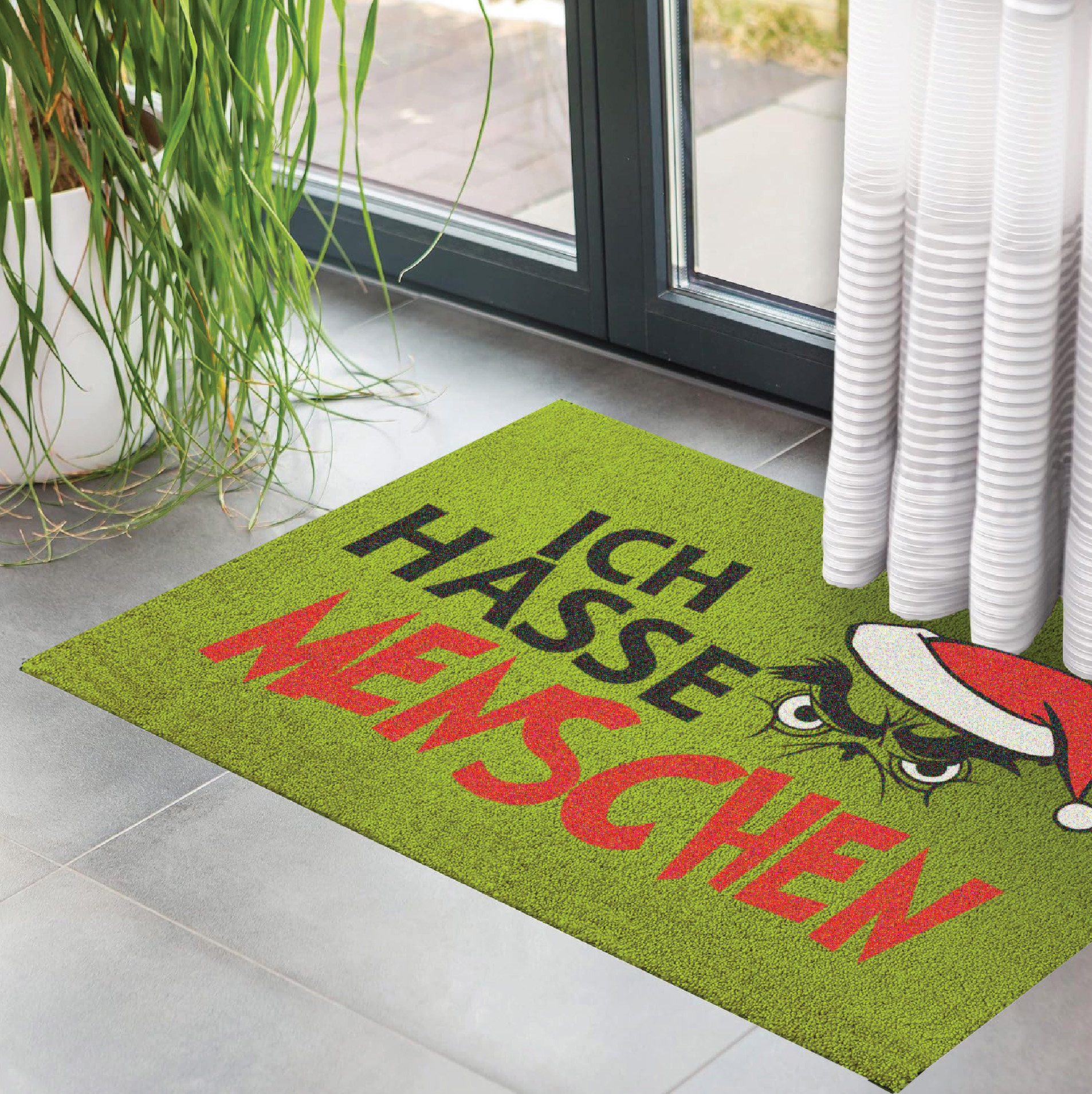 Während der festlichen Adventszeit, wenn Glühweinduft und Weihnachtslieder die Luft erfüllen, gibt es immer noch jemanden, der dem Trubel lieber entgeht: den Festtags-Muffel. Mit unserer besonderen Fußmatte für Festtags-Muffel und dem einzigartigen Spruch "Ich hasse Menschen" kannst du während der Weihnachtszeit ein humorvolles und leicht sarkastisches Statement setzen! Das gift-grüne Gesicht, das selbst dem Nikolaus die Stirn bietet, prangt mittig auf der Matte und sorgt für unverwechselbaren Anti-Weihnachtscharme. Der große Spruch "Ich hasse Menschen" ist das humorvolle Highlight auf der Fußmatte. Hergestellt aus hochwertigem Polyamid, ist diese Matte bereit für den Winterzauber und die vorweihnachtlichen Besucherströme. Auch bei Schnee und Eis draußen sorgt die gummierte Unterseite für sicheren Halt. Einfache Pflege, egal ob Schnee, Schlamm von den Weihnachtsmärkten oder Krümel vom Nikolausstiefel – ein schnelles Abschütteln oder Absaugen und deine Matte sieht wieder aus wie neu! Mit dieser Fußmatte für Festtags-Muffel bringst du einen Hauch von frechem Humor in die besinnliche Weihnachtszeit. Sie ist das ideale Accessoire für all jene, die auch mal während des Festes der Liebe schmunzeln möchten. Bestelle jetzt und sorge für einen unvergesslichen Empfang in der schönsten Zeit des Jahres!