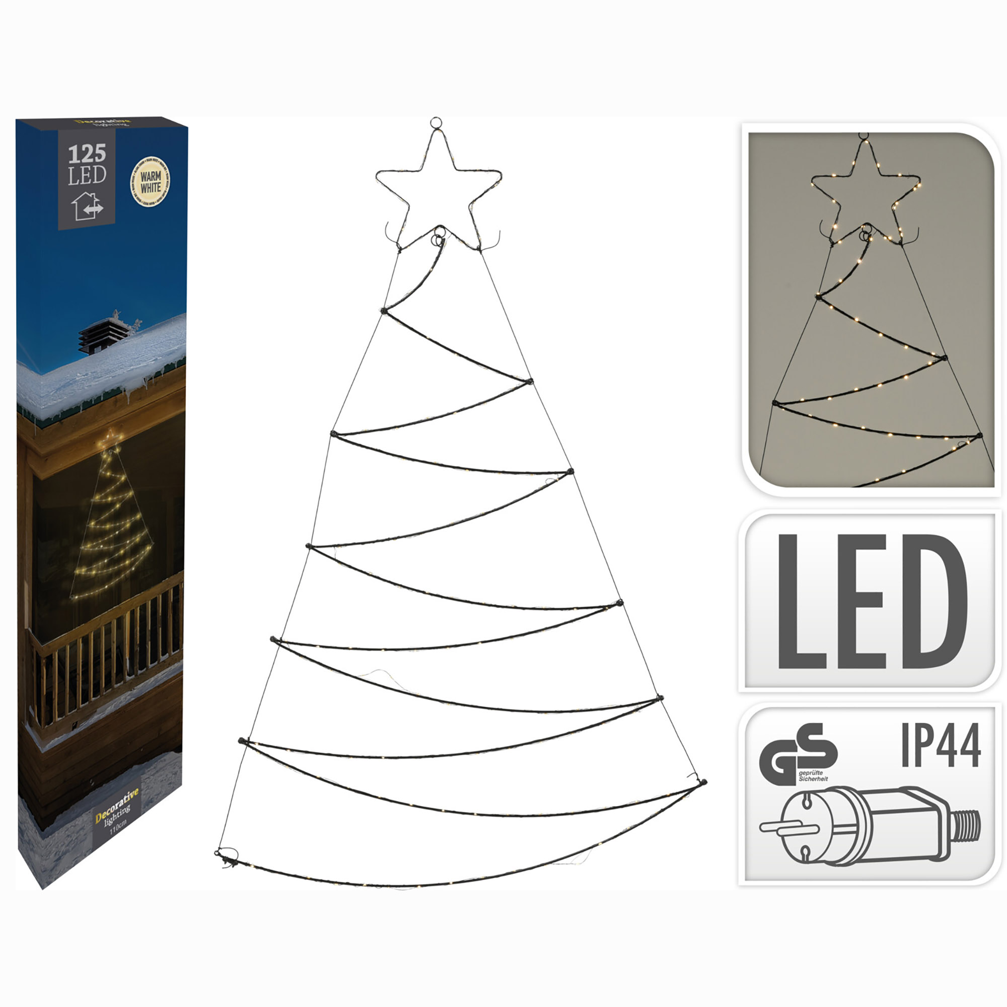 Erleben Sie die einzigartige Atmosphäre, die unser Annastore LED Baum in Ihrem Heim oder Garten schafft. Dieser LED-Weihnachtsbaum ist mehr als eine bloße Weihnachtsdekoration, es ist eine Einladung zum Genießen und Entspannen in einem gemütlichen Ambiente voller warmem und einladendem Licht. Unsere 110 cm LED-Deko-Tanne verfügt über 125 warmweiße LEDs, die in den kalten Winterabenden eine beruhigende und wohlfühlende Atmosphäre in Ihrem Heim schaffen. Das unverkennbare Tannenform-Design und die strahlende Sternspitze sind durch einen eleganten Lichtschlauch realisiert, der bei Dunkelheit zum glanzvollen Highlight wird. Stellen Sie sich vor, wie Sie nach einem langen Tag nach Hause kommen und von dem sanften Schein dieser Weihnachtsdekoration empfangen werden - was gibt es Schöneres, um den Abend einzuläuten? Platzieren Sie ihn über der Fensterbank, einem Tisch oder sogar im Freien, denn die LED Tanne wird mit einem IP44 Trafo für den Außenbereich geliefert, der gegen Wasser und Feuchtigkeit beständig ist. Entdecken Sie den Zauber der Weihnacht mit unserer LED-Tannen-Beleuchtung und lassen Sie sich von der Wärme und Gemütlichkeit verzaubern, die dieses Dekostück vermittelt. Tauchen Sie ein in eine Welt aus Licht und Weihnachtsfreude mit unserem Annastore LED-Weihnachtsbaum!