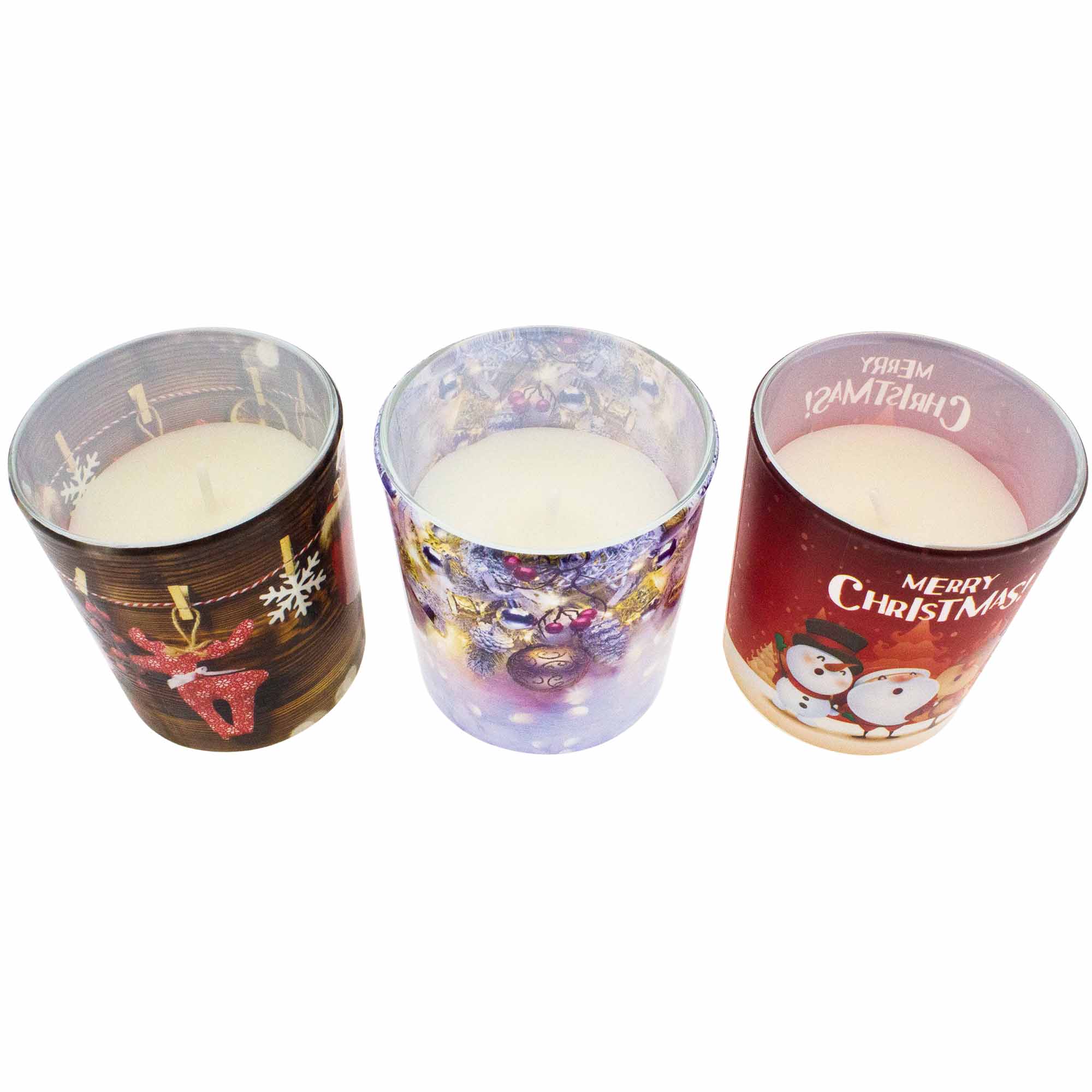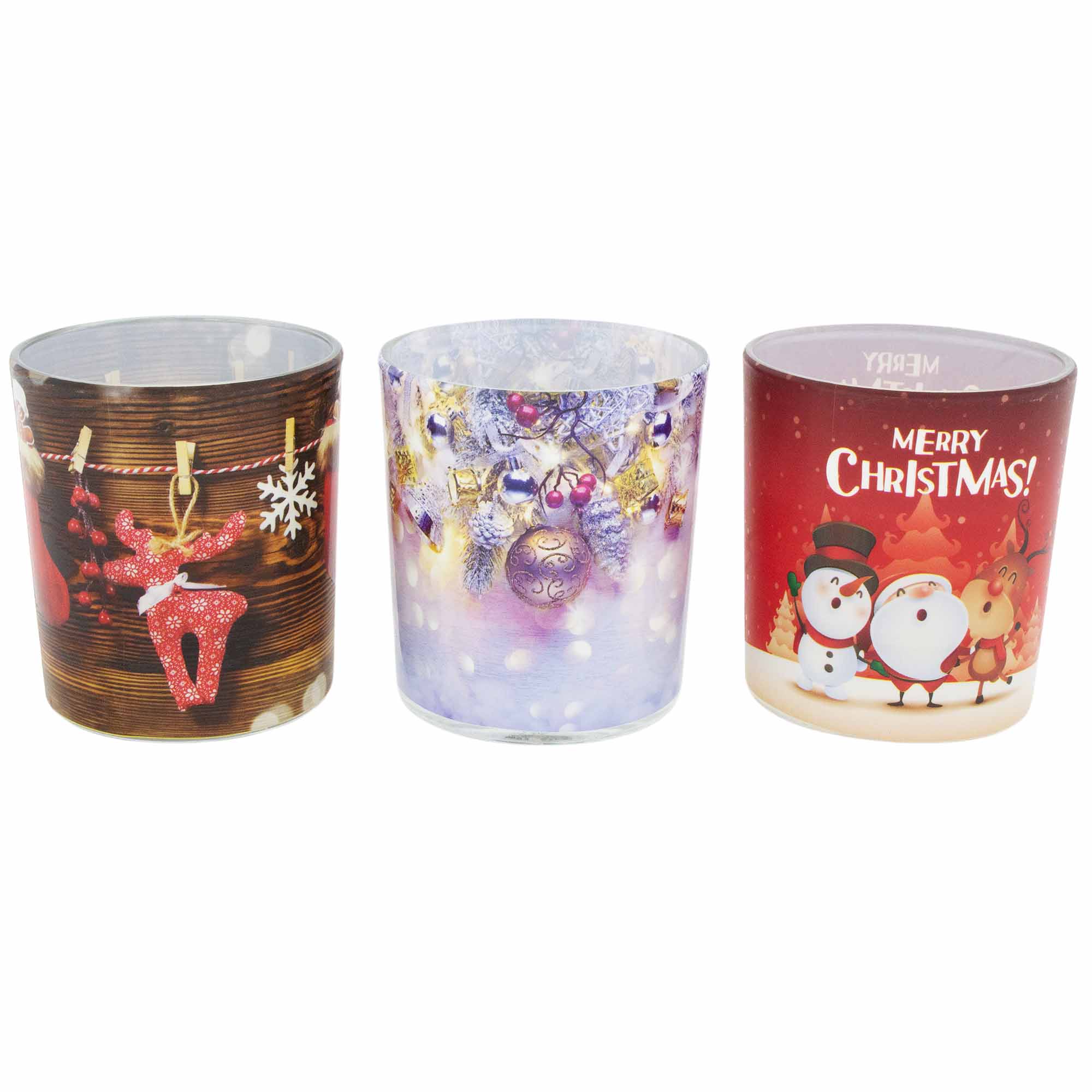 3-tlg. Set Duftkerzen im stimmungsvollen Motivglas H 7,7 cm