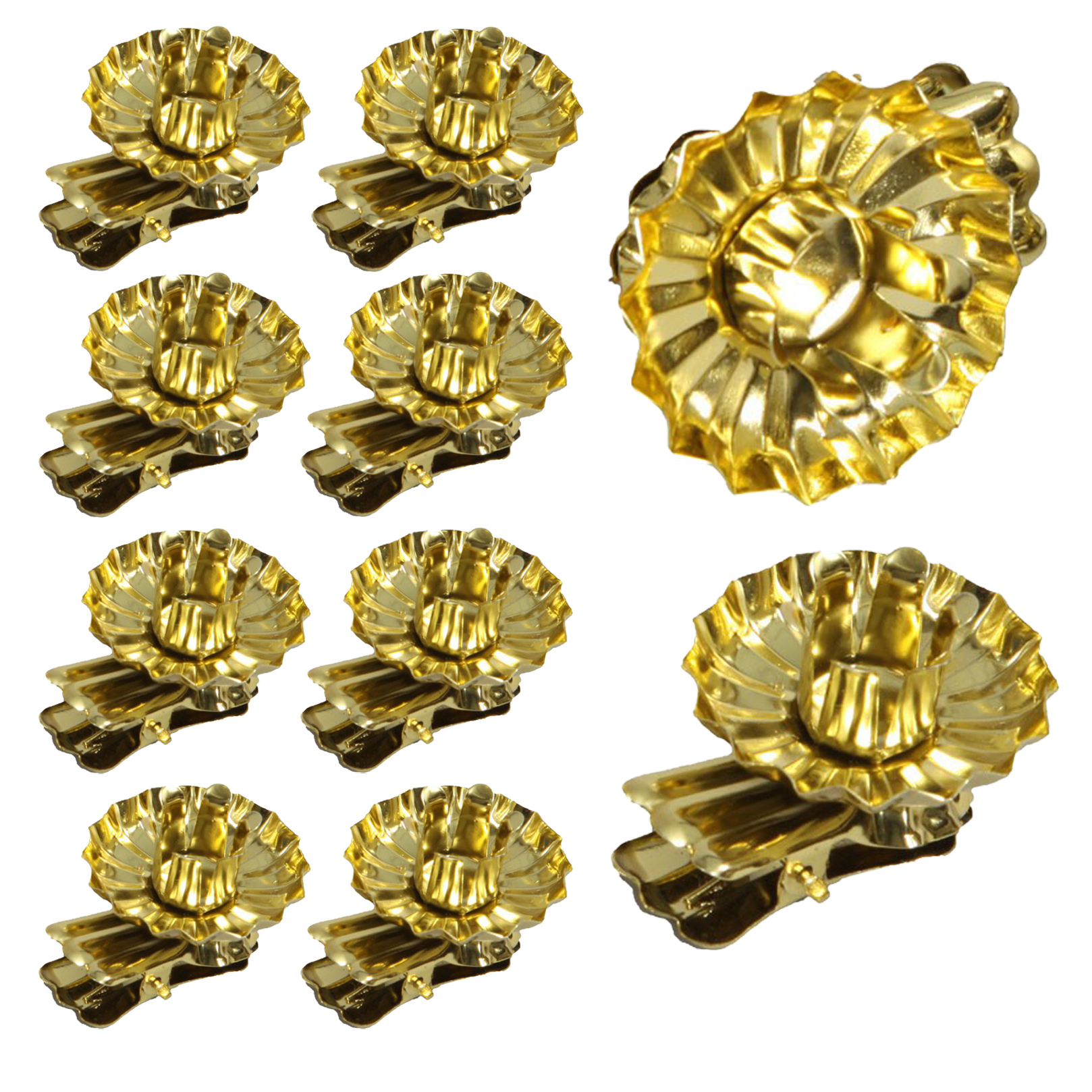 Unsere Weihnachtsbaumkerzenhalter haben eine klassische Zapfenform und können dank des Clips ganz leicht an jeden Tannenzweig angebracht werden. Im Clip befindet sich ein Kugelgelenk, wodurch die Kerze mühelos gerade ausgerichtet werden kann. Für einen schön geschmückten Weihnachtsbaum mit echten Kerzen und eine zauberhafte weihnachtliche Atmosphäre. Jede Kerzentülle ist durch sanftes biegen leicht verstellbar und der Tropfschutz-Teller fängt das heruntertropfende Wachs auf. Die Kerzenhalter sind aus Metall und haben einen Durchmesser von 4 cm und sind 3 cm hoch.