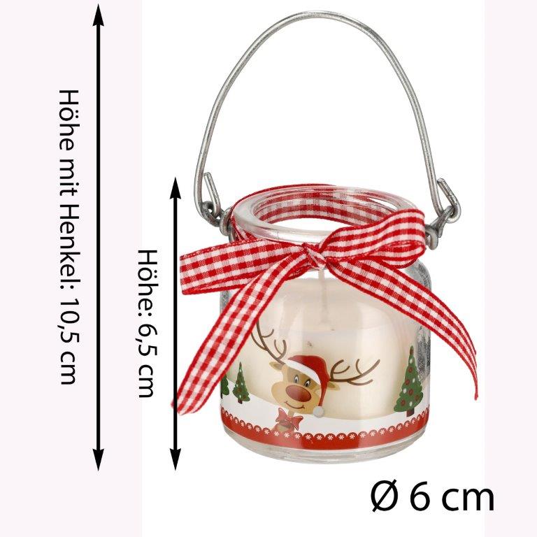 Produktinformationen "12 x Duftkerzen im Glas mit süßem Rentier, 2 Modelle sortiert"