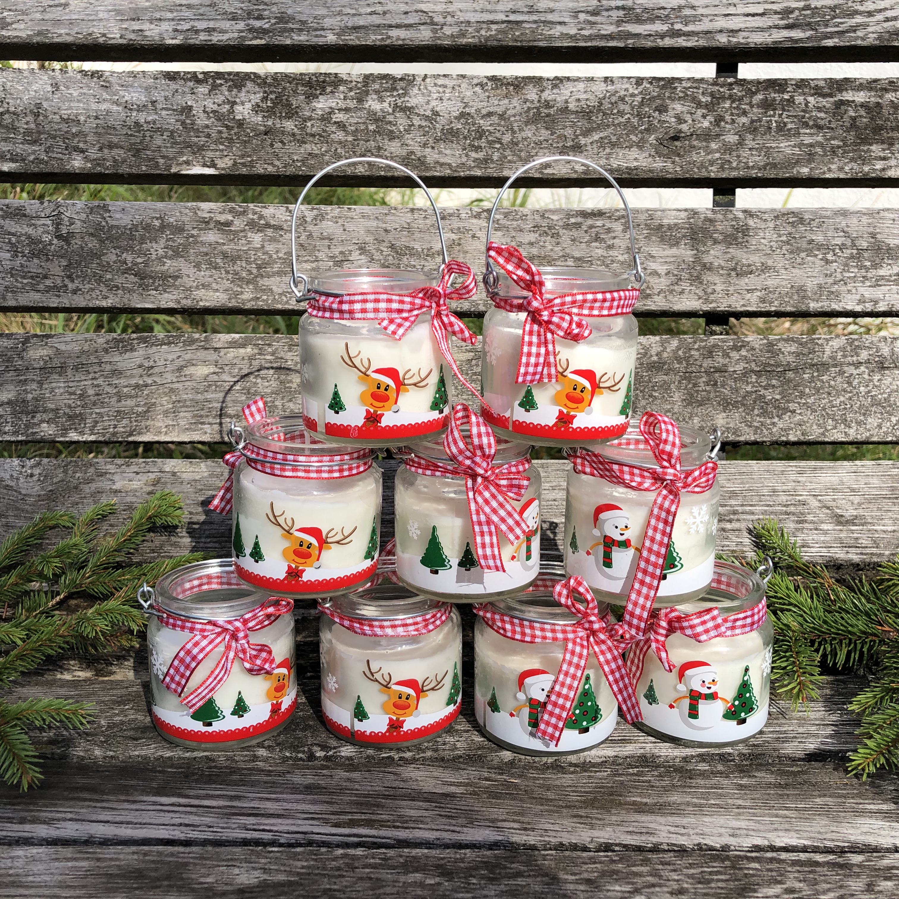 Tauche ein in die festliche Weihnachtsatmosphäre mit unseren bezaubernden Duftkerzen im Glas! Jede Kerze ist mit einem Henkel versehen und verziert mit einem niedlichen Rentier- und Schneemann-Motiv sowie einer schönen Schleife im Karo-Design. Diese Duftkerzen sind nicht nur eine stimmungsvolle Tischdekoration, sondern verbreiten auch einen herrlich weihnachtlichen Duft in deinem Zuhause. Perfekt geeignet als Wichtelgeschenk, für Nikolaus oder als Füllung von Adventskalendern. Mach dir selbst eine Freude oder überrasche deine Liebsten mit diesem zauberhaften Produkt! Hol dir jetzt die Weihnachtsstimmung nach Hause und lass dich von dem einzigartigen Duft umhüllen. Gönn dir diese kleine Auszeit vom Alltag und genieße die gemütliche Zeit im Kreis deiner Liebsten. Unsere Duftkerzen im Glas sind das ideale Geschenk für jeden, der die Weihnachtszeit liebt. Also warte nicht länger und sichere dir dieses besondere Produkt, das dein Zuhause in eine duftende Winterwunderwelt verwandeln wird!