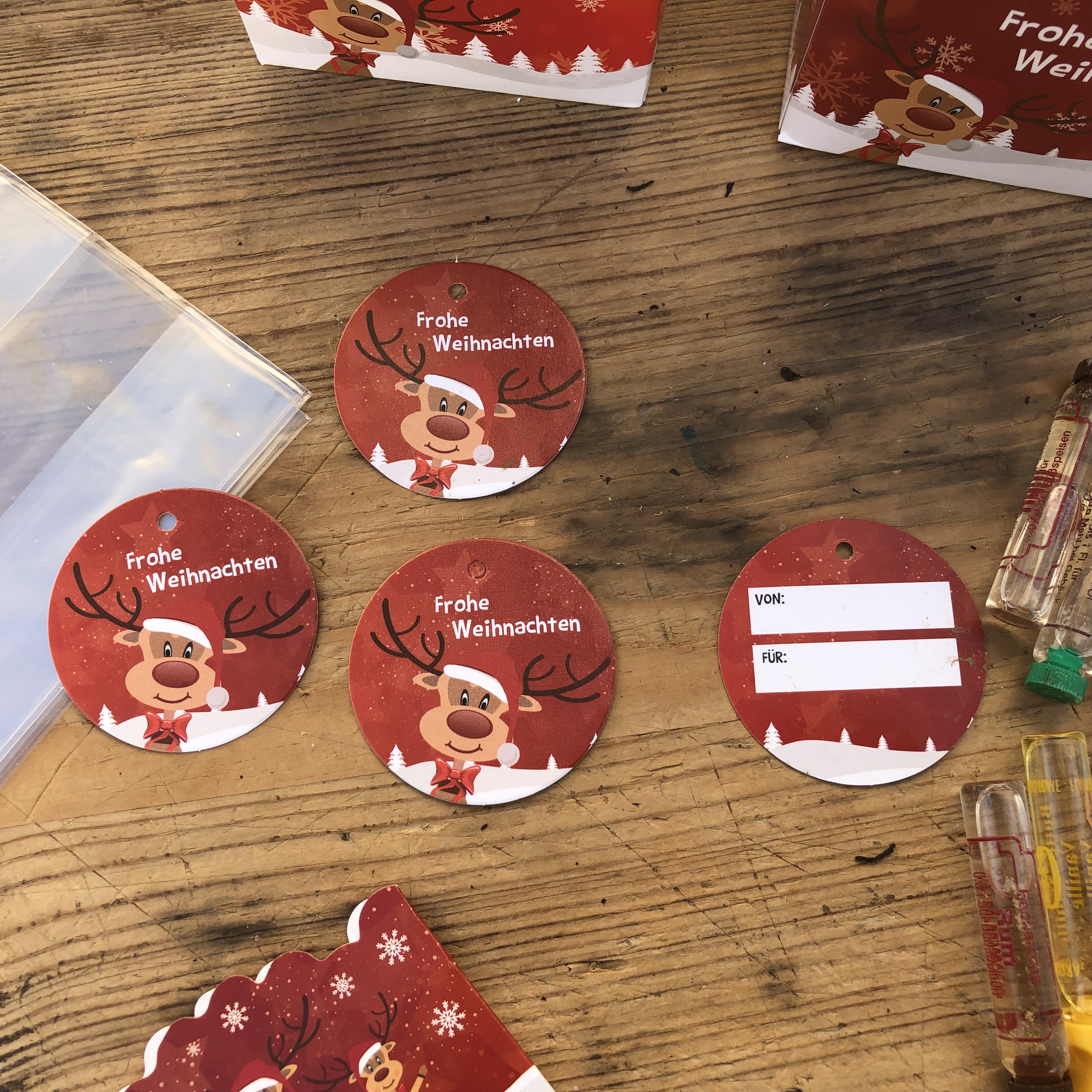 Lieferumfang: 36 Pappschachtel, 36 Tüten, 36 Geschenkanhänger, 36 x Rote Schleife