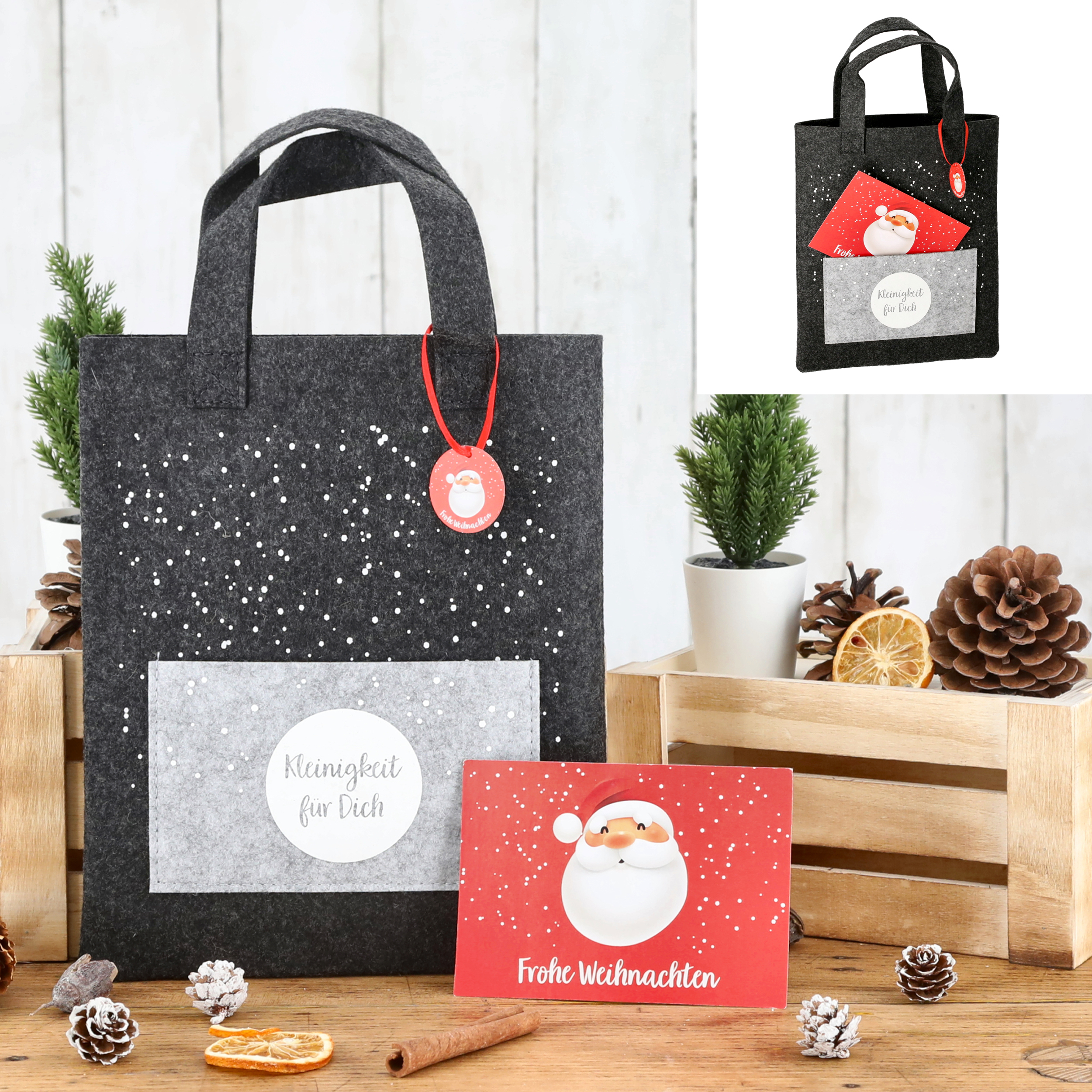3 x Filz-Geschenktasche "Kleinigkeit für Dich" inkl. Weihnachtspostkarte 22 x 26 cm
