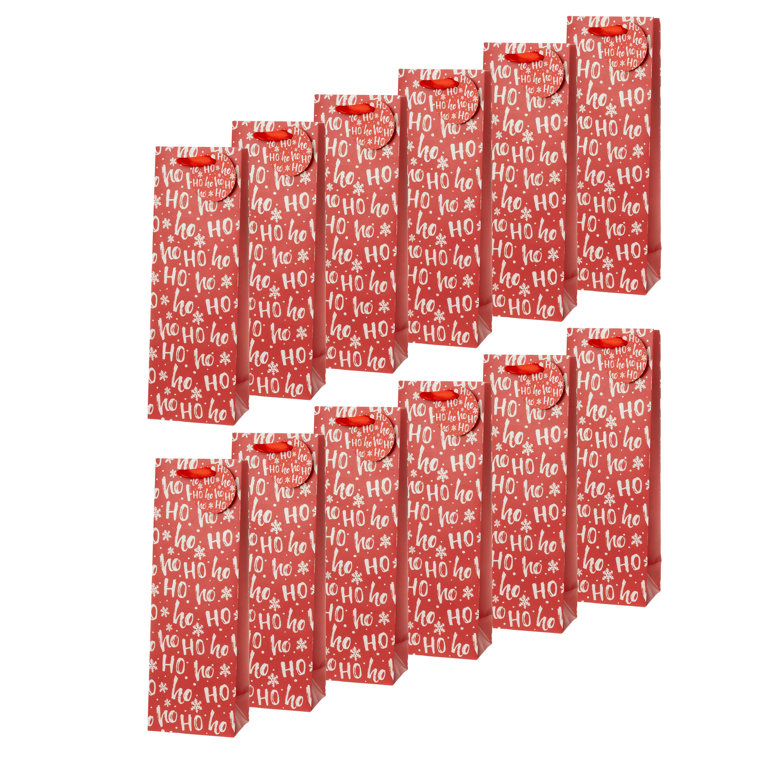 12 x Flaschentüte "HoHoHo" aus Papier 12 x 9 x 36 cm (B/T/H)