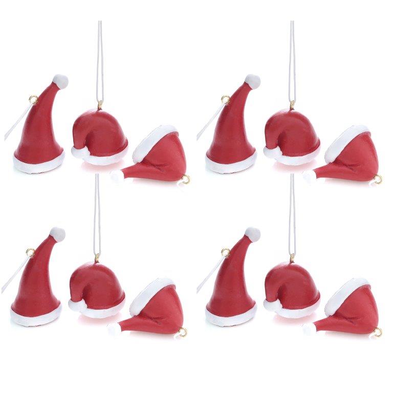 12 x Baumhänger "Weihnachtsmütze" aus Polyresin 3 x 5 cm