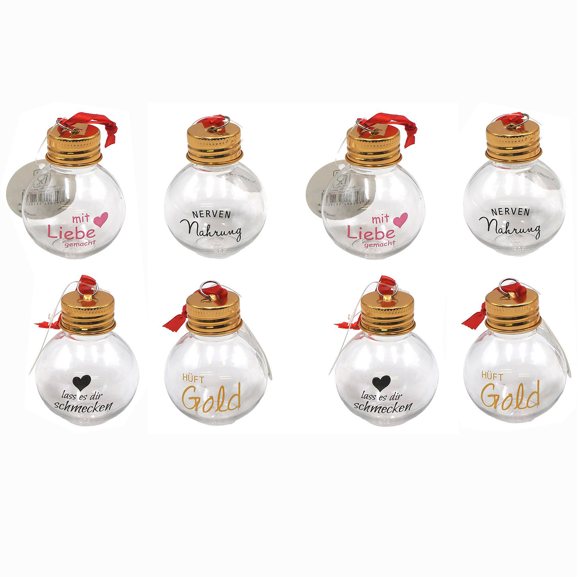 8-tlg. Set Likör-Weihnachtskugeln mit Spruch 50 ml