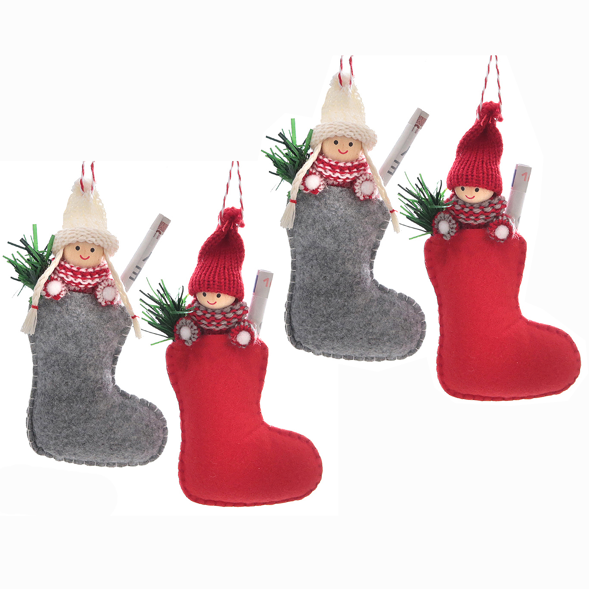 4 x Anhänger "Wichtel in Socke" für Geldgeschenke H 17 cm